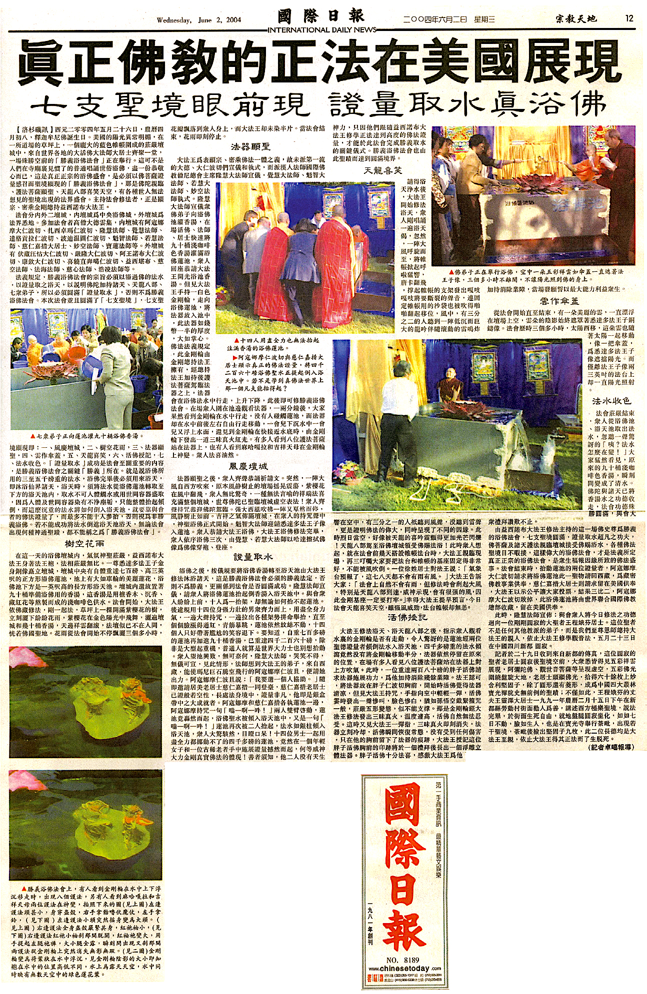 浴佛之後,按儀規要將浴佛香湯轉至浴天池由大法王(南無第三世多杰羌佛)修法沐浴諸天,這是勝義浴佛法會必須的勝義法定⋯⋯善者須知,他二人沒有天生神力,只因他們跟隨益西諾布大法王(南無第三世多杰羌佛)修學正法達到高度的佛法證量,才能於此法會完成勝義取水的關鍵儀式。勝義浴佛法會也由此聖蹟而達到圓滿境界。